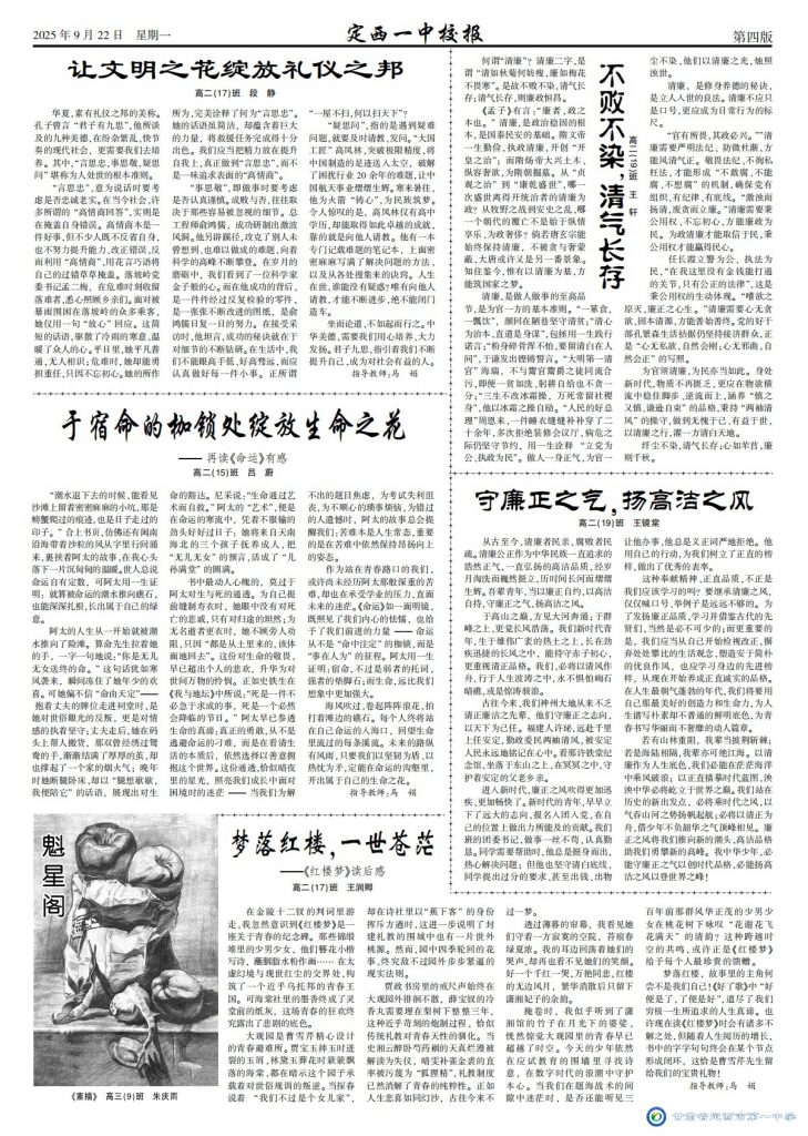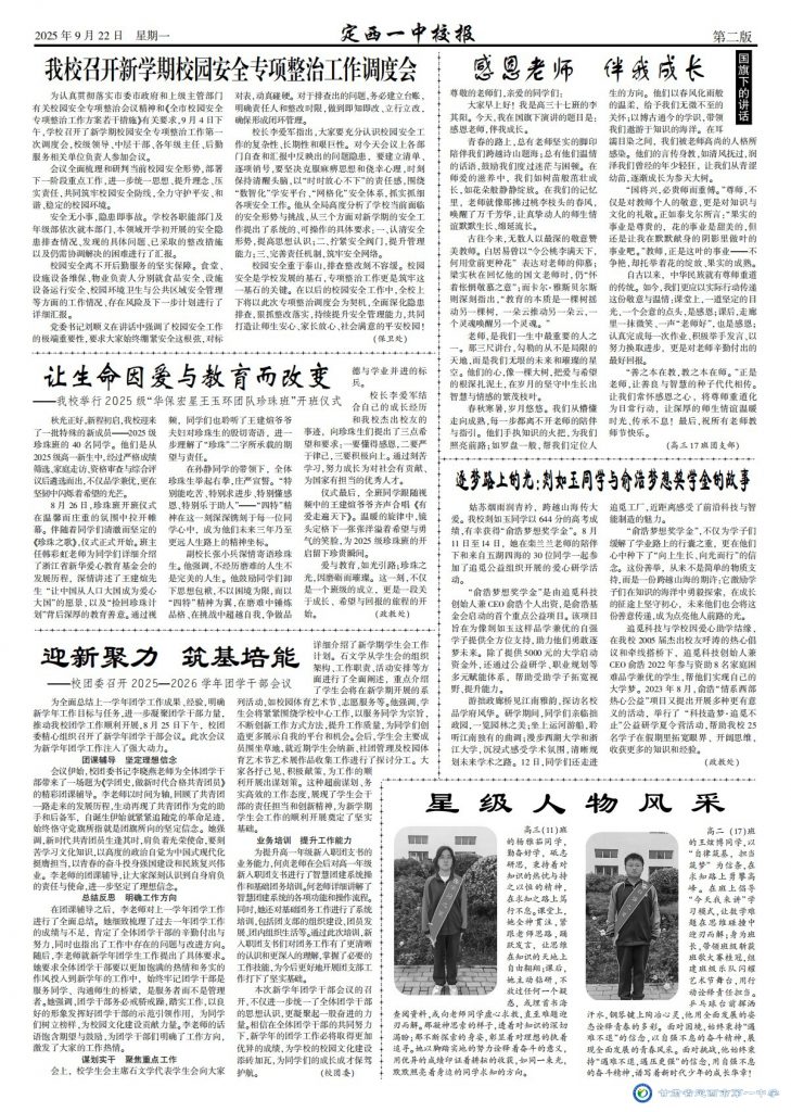 【“三抓三促”行動進行時】定西一中校報2025年第六期 時間:2025-09-23 分類:三抓三促/ 校報???/a> (撰稿:董立順 審核:王景龍 田永強 監(jiān)審:水晶) 定西一中校報2025年第六期下載 分享: 上一個: 【“三抓三促”行動進行時】四省聯(lián)袂研考路 共繪備考新藍(lán)圖 下一個: 【“三抓三促”行動進行時】聚名師智慧 ?賦能備高考 相關(guān)文章 【“三抓三促”行動進行時】筑基強師涵養(yǎng)匠心 示范引領(lǐng)共繪宏圖 【“三抓三促”行動進行時】聚名師智慧 ?賦能備高考 【“三抓三促”行動進行時】四省聯(lián)袂研考路 共繪備考新藍(lán)圖 【“三抓三促”行動進行時】喜報——我校教師在2025年全市中小學(xué)基礎(chǔ)教育精品課遴選活動中榮獲佳績 【“三抓三促”行動進行時】教學(xué)增效重常態(tài)?教研賦能鑄匠心 【“三抓三促”行動進行時】喜報——我校學(xué)子在2024—2025學(xué)年全國版圖知識競賽(中小學(xué)組)活動中榮獲佳績 【“三抓三促”行動進行時】喜報——我校學(xué)子在2025年全國中學(xué)生生物學(xué)競賽甘肅賽區(qū)聯(lián)賽中榮獲佳績 【“三抓三促”行動進行時】定西一中校報2025年第五期