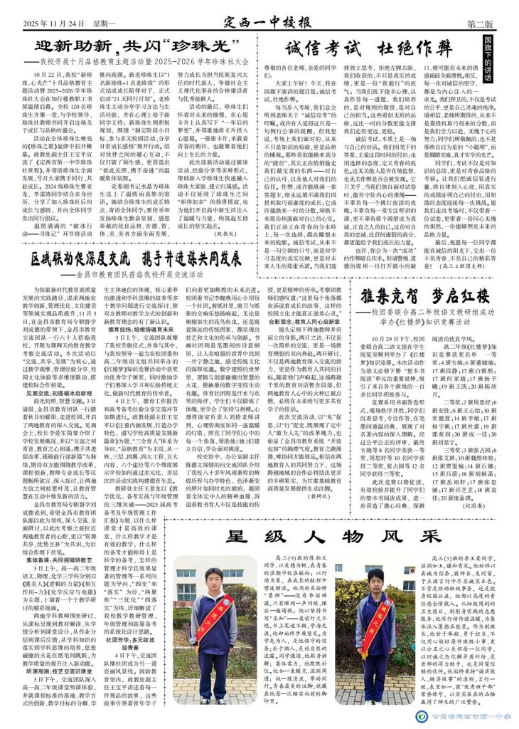 【“三抓三促”行動進(jìn)行時】定西一中校報2025年第八期 時間:2025-11-25 分類:三抓三促/ 校報校刊 (撰稿:董立順 審核:王景龍 田永強 監(jiān)審:水晶) 定西一中校報2025第八期下載 分享: 上一個: 【“三抓三促”行動進(jìn)行時】師徒同心展匠心 青藍(lán)攜手綻芳華 下一個: 【研經(jīng)悟理 授業(yè)傳道】廣學(xué)集智逐光行,求變則通耘夢田 相關(guān)文章 【區(qū)域聯(lián)動 眾行致遠(yuǎn)】智慧共享 ?智研共贏 【研經(jīng)悟理 授業(yè)傳道】廣學(xué)集智逐光行,求變則通耘夢田 【“三抓三促”行動進(jìn)行時】師徒同心展匠心 青藍(lán)攜手綻芳華 【“三抓三促”行動進(jìn)行時】幫扶搭臺連校際 互鑒同行共育人 【“三抓三促”行動進(jìn)行時】區(qū)域聯(lián)動促深度交流?攜手并進(jìn)謀共同發(fā)展 【“三抓三促”行動進(jìn)行時】喜報——我校學(xué)子在2025年全國中學(xué)生數(shù)學(xué)奧林匹克競賽甘肅賽區(qū)聯(lián)賽中榮獲佳績 【“三抓三促”行動進(jìn)行時】細(xì)耕常規(guī) 智研共進(jìn) 【“三抓三促”行動進(jìn)行時】遇見教育 預(yù)見成長