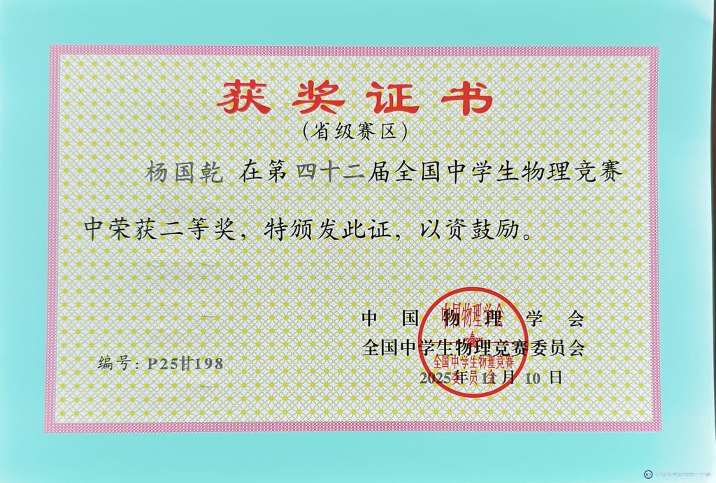 喜報(bào)——我校學(xué)子在2025年第42屆全國中學(xué)生物理競賽甘肅聯(lián)賽中榮獲佳績 時間:2025-12-03 分類:三抓三促/ 教研成果 在2025年第42屆全國中學(xué)生物理競賽甘肅聯(lián)賽中,我校4人參賽,4人獲獎。其中省級一等獎1人,省級二等獎2人,省級三等獎1人。 (撰稿:董立順 審核:王景龍 田永強(qiáng) 監(jiān)審:水晶) 分享: 上一個: 定西一中“對話名校 筑夢未來”系列活動|哈爾濱工業(yè)大學(xué)專場 相關(guān)文章 定西一中“對話名校 筑夢未來”系列活動|哈爾濱工業(yè)大學(xué)專場 【區(qū)域聯(lián)動 眾行致遠(yuǎn)】智慧共享 ?智研共贏 【研經(jīng)悟理 授業(yè)傳道】廣學(xué)集智逐光行,求變則通耘夢田 【“三抓三促”行動進(jìn)行時】定西一中校報(bào)2025年第八期 【“三抓三促”行動進(jìn)行時】師徒同心展匠心 青藍(lán)攜手綻芳華 【“三抓三促”行動進(jìn)行時】幫扶搭臺連校際 互鑒同行共育人 【“三抓三促”行動進(jìn)行時】區(qū)域聯(lián)動促深度交流?攜手并進(jìn)謀共同發(fā)展 【“三抓三促”行動進(jìn)行時】喜報(bào)——我校學(xué)子在2025年全國中學(xué)生數(shù)學(xué)奧林匹克競賽甘肅賽區(qū)聯(lián)賽中榮獲佳績